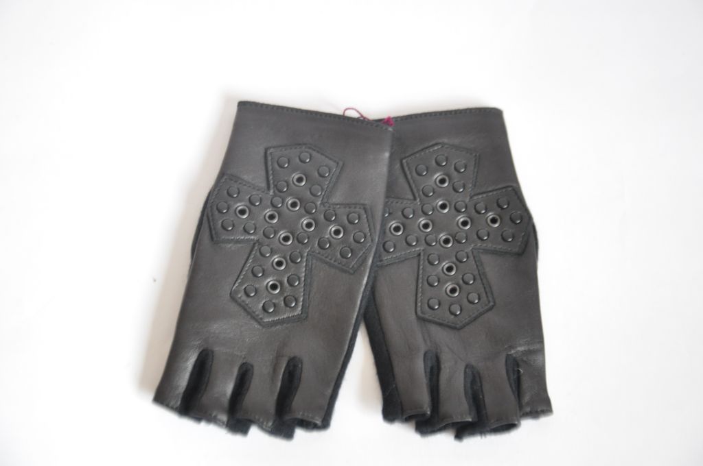 кожаные перчатки на шелковой подкладке декорированы узором в виде креста, на задней стороне застегиваются на кнопку