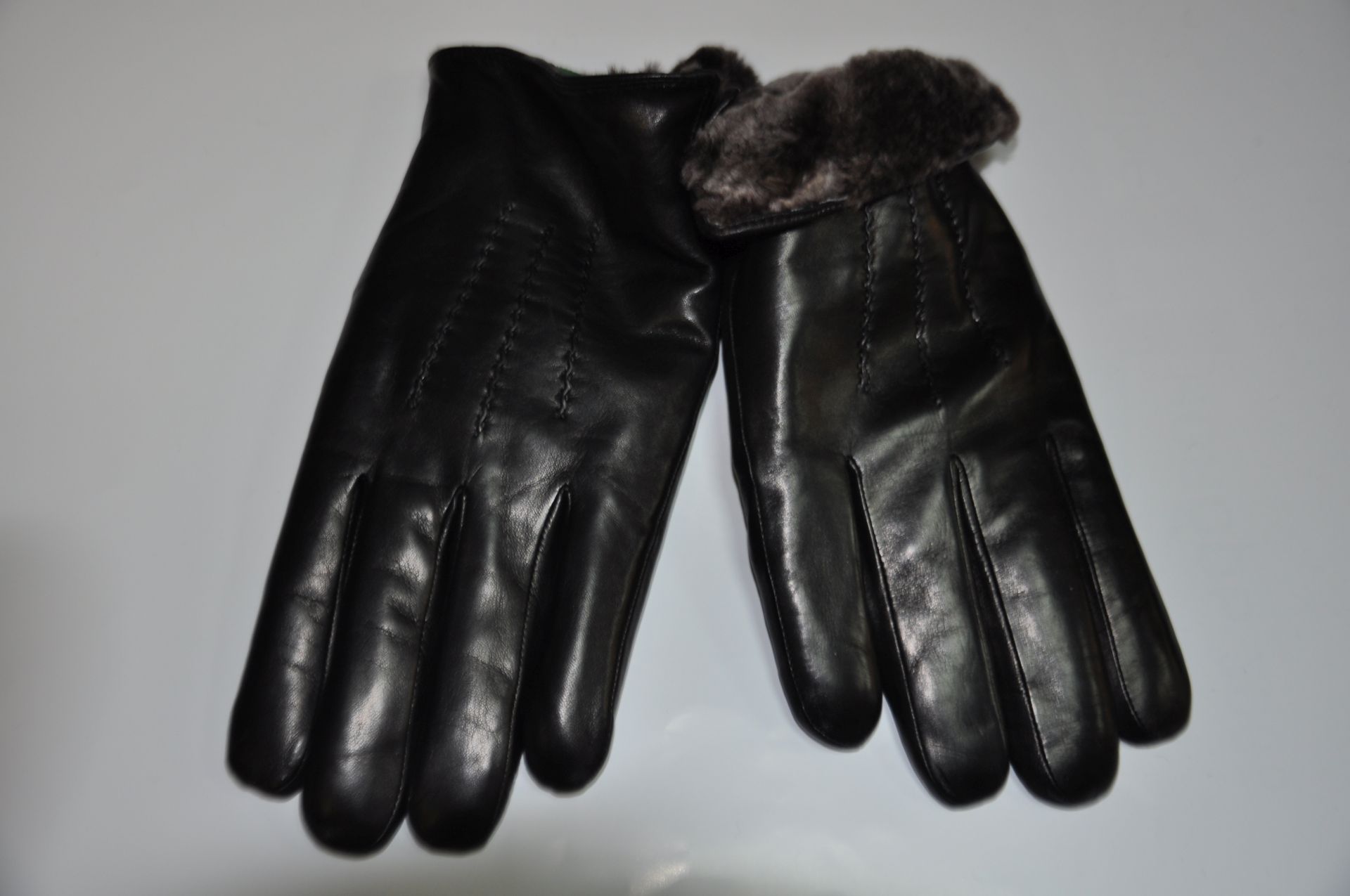 кожаные перчатки с наружной стороны перчатки рисунок с тремя строчками с небольшим разрезом сбоку